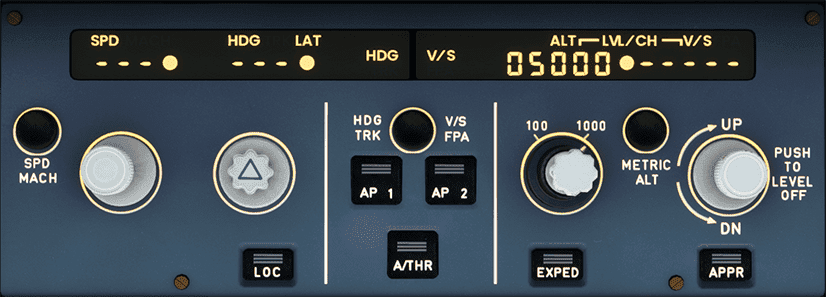 This is the FCU (more details are provided in the Take off, Climb, and Cruise Guide): FCU